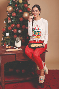 Pigiama da donna Gretel Sorbetto beige - festivo, lunghezza. manica, stampa pan di zenzero