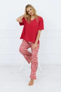Evora Pigiama da donna a maniche corte, pantaloni lunghi Moda italiana - rosso scuro/stampa