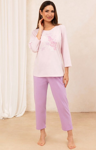 706 Pigiama da donna in cotone rosa - maniche 3/4, pantaloni 7/8, stampa decorativa