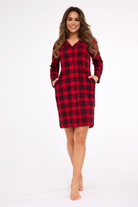 104/433 Camicia sbottonata Tracy Cornette - cotone, sbottonata, a quadri rossi, manica lunga
