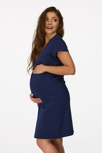 no. 16 Camicia da notte per la gravidanza Senizo blu navy - 100% cotone, manica corta, allattamento con bottone