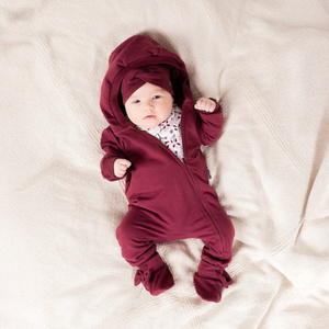 Tutina per bambino Beary Cool Eevi - pelle di agnello, beige, con orecchie e zip