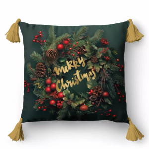 5380 Una federa decorativa natalizia Detexpol con renna e ghirlanda su sfondo a quadri - zip