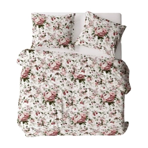 5502 A Biancheria da letto in cotone rosa con fiori e boccioli crema Naturalis- Detexpol
