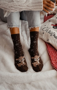 1283-036 Calzini da donna con piccola renna Milena marrone - festosi, colorati, in cotone