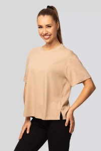 T-shirt in cotone urban beige da donna - Manica corta, taglio classico, alla moda con spacchetti | Materiale di alta qualità, elasticità