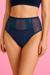 Mutandine da donna VF-474 - a vita alta, in pizzo, comfort Vena blu navy-verde
