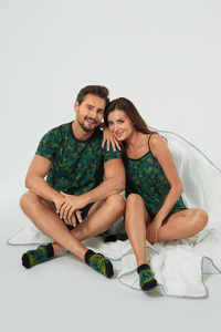 Tess Pigiama donna maniche lunghe e pantaloni lunghi Moda italiana - verde/stampa