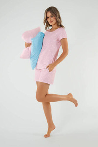Leta Pigiama da donna a maniche corte, pantaloncini Moda italiana - stampa/rosa polvere