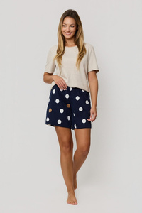 Pigiama da donna Mefemi by Nipplex Oceane beige - viscosa a coste, T-shirt e pantaloncini con piselli