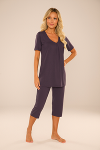 878 Dahlia Pigiama da donna De Lafense - viscosa, manica corta, pantaloni 3/4 - grigio