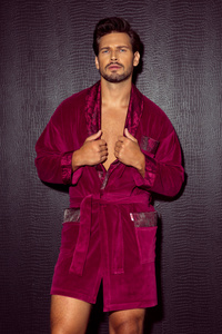 866 Noble Accappatoio in velluto De Lafense da uomo - corto, elegante, in cotone - bordeaux