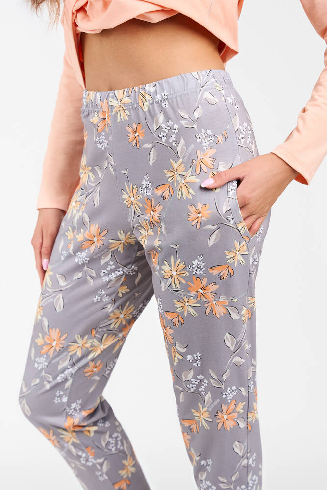 Serata tranquilla davanti al camino? Solo in un comodo pigiama! E tali condizioni sono garantite dal pigiama da donna in cotone con pantalone lungo e maniche lunghe, semplice ma elegante e quanto mai confortevole! Il materiale naturale mantiene la pelle traspirante e piacevole, mentre il taglio dritto promette libertà e comfort totali. I pantaloni di questo elegante pigiama da donna sono decorati con un bellissimo motivo floreale e sono dotati di tasche funzionali, mentre la camicetta a tinta unita è rifinita con una scollatura rotonda e un grazioso fiocchetto. Gli eleganti pigiami da donna sono disponibili nelle taglie dalla S alla XXL, nei toni del grigio salmone.