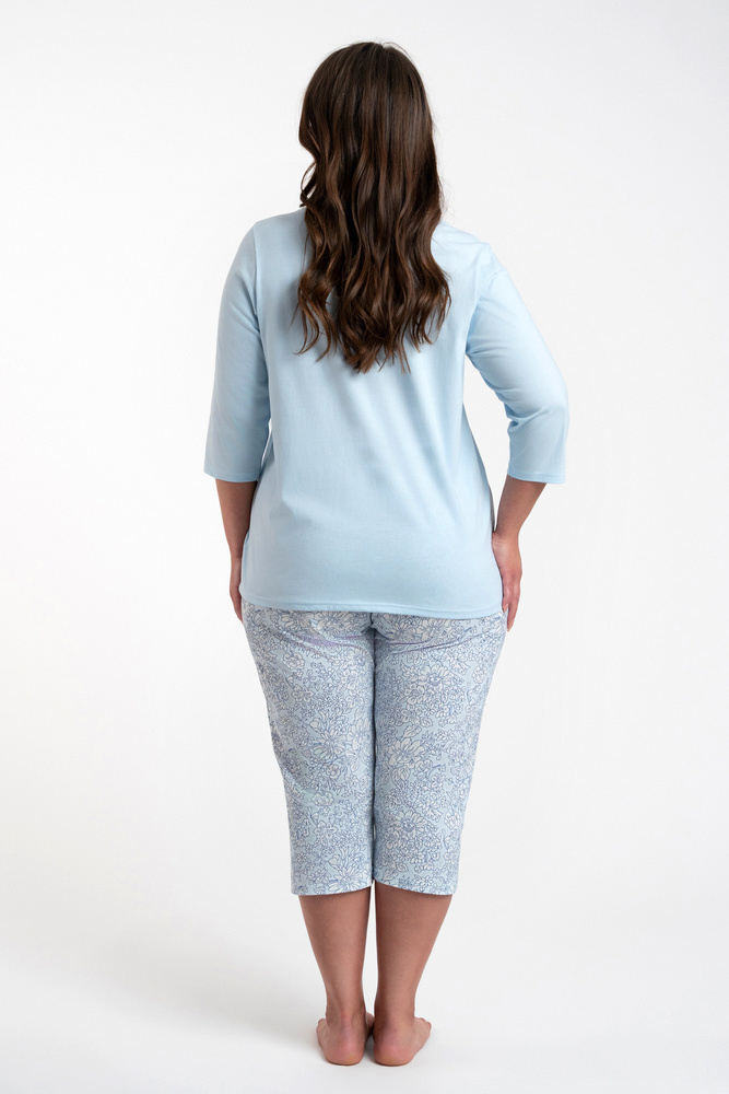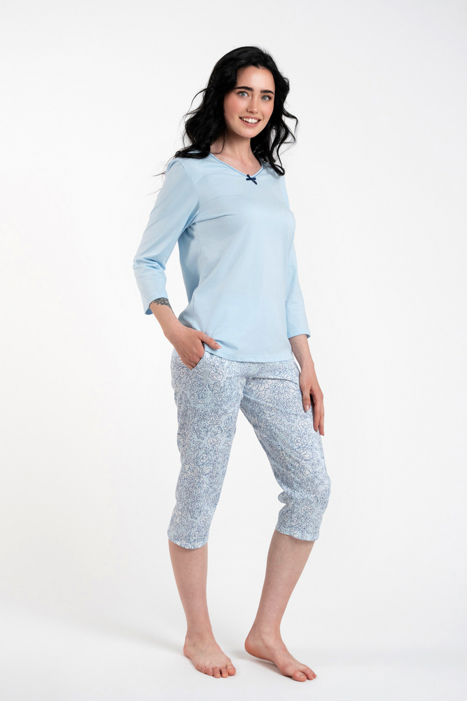 Salli Pigiama donna manica 3/4 e pantalone 3/4 Moda italiana -blu/stampa
