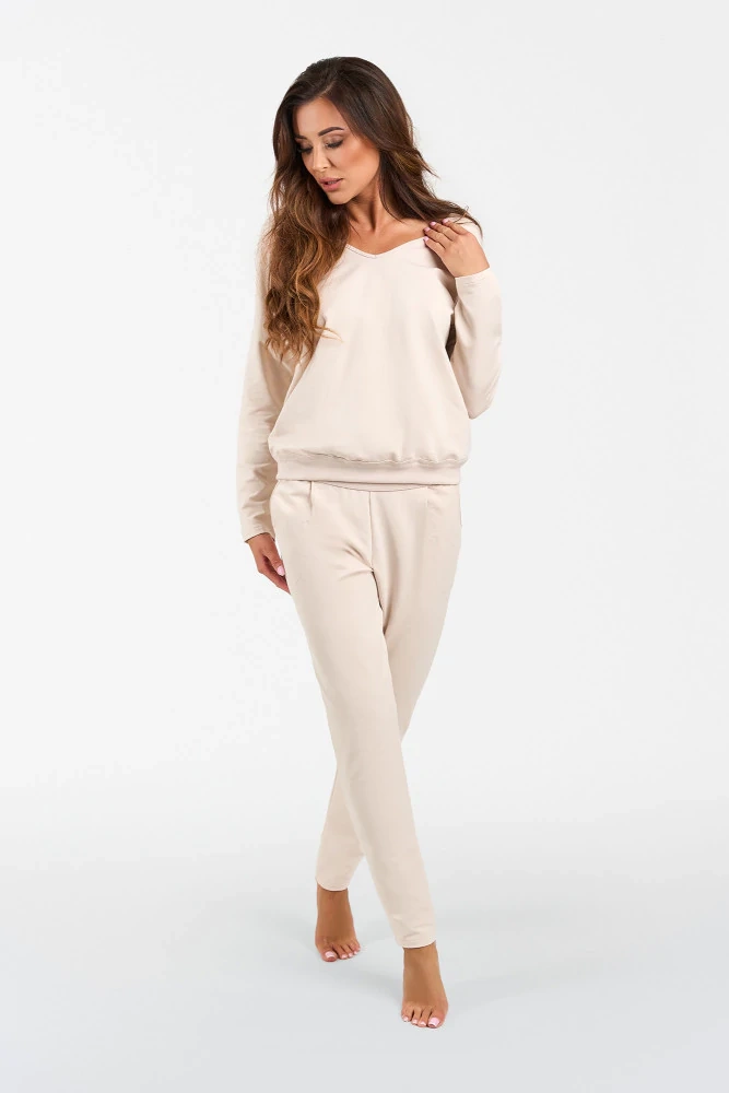 Karina Donna set manica lunga, pantaloni Moda Italiana - beige