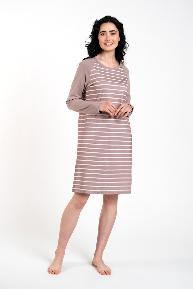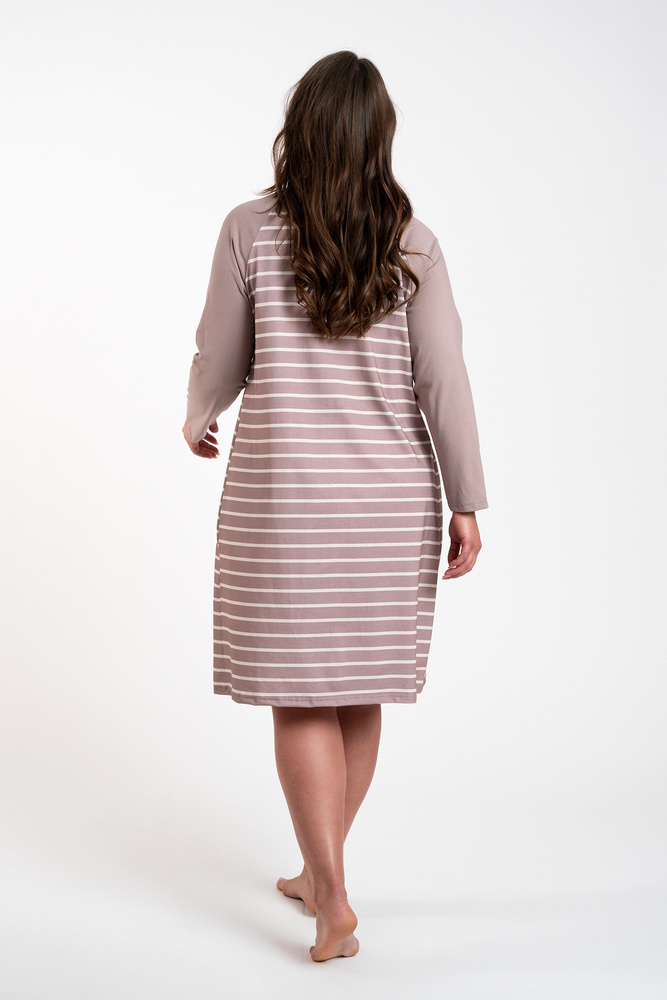 La camicia da notte femminile in cotone è una garanzia di comfort e libertà che ogni donna desidera e merita! La camicia da letto leggera e aderente e il tessuto sicuro e delicato sulla pelle garantiscono il comfort sia nelle notti fredde che in quelle calde. La manica lunga e la lunghezza al ginocchio rendono la camicia da notte perfetta sia in casa che fuori, mentre l'intramontabile motivo a righe si adatta a ogni donna. La camicia da notte in 100% cotone è disponibile in due colori, grafite e cappuccino, e nelle taglie dalla S alla XXL.