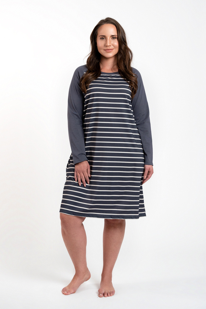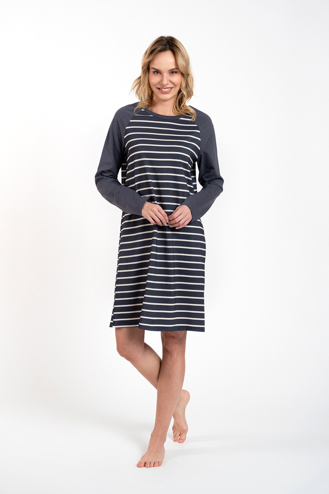 La camicia da notte femminile in cotone è una garanzia di comfort e libertà che ogni donna desidera e merita! La camicia da letto leggera e aderente e il tessuto sicuro e delicato sulla pelle garantiscono il comfort sia nelle notti fredde che in quelle calde. La manica lunga e la lunghezza al ginocchio rendono la camicia da notte perfetta sia in casa che fuori, mentre l'intramontabile motivo a righe si adatta a ogni donna. La camicia da notte in 100% cotone è disponibile in due colori, grafite e cappuccino, e nelle taglie dalla S alla XXL.