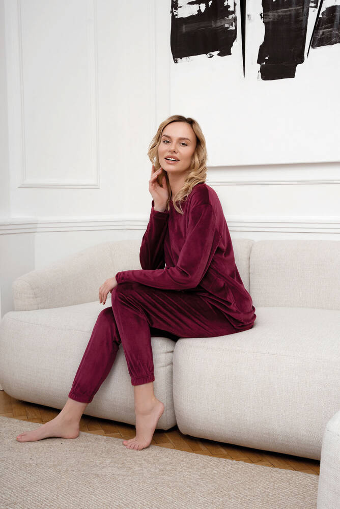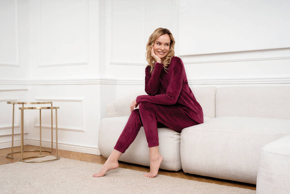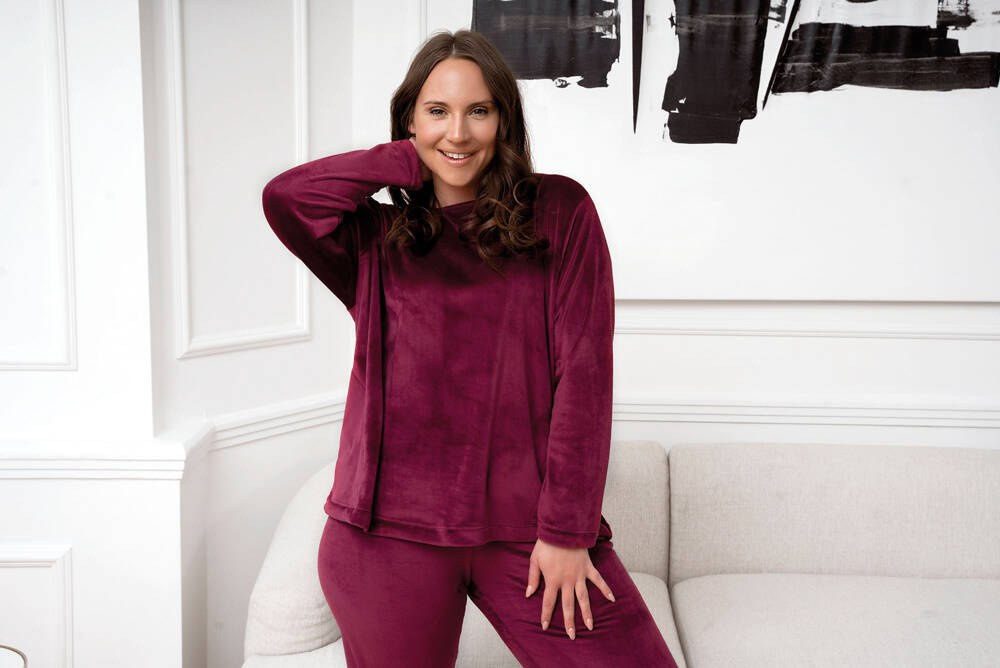 Elegante ma sportivo. Set in morbido pile da donna molto confortevole e caldo, perfetto per le giornate e le serate invernali. Può essere trattato come un caldo pigiama o come una tuta da ginnastica di grande effetto e alla moda. Il set di felpa e pantaloni in pile da donna garantisce libertà e comfort con un look molto interessante. I pantaloni sono rifiniti con bordi a coste, mentre la felpa a girocollo è dotata di tasche funzionali. Il set di pile da donna alla moda è disponibile nelle taglie dalla S alla XXL in due colori: bordeaux e rosa cipria.