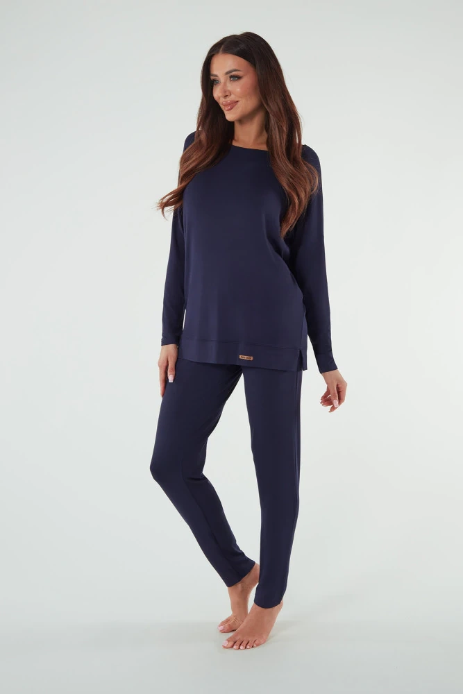 Akord Donna set manica lunga, pantaloni lunghi Moda Italiana - blu navy