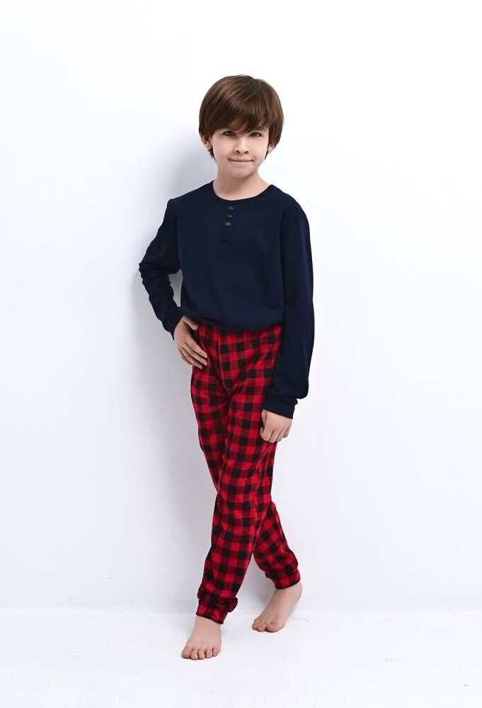 Adorabile pigiama da ragazzo in cotone di alta qualità. Maglietta a maniche lunghe. Pantaloni lunghi, fantasia.