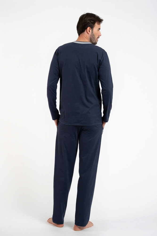 Zbyszek Pigiama uomo manica lunga, pantaloni lunghi Talian Fashion - blu navy