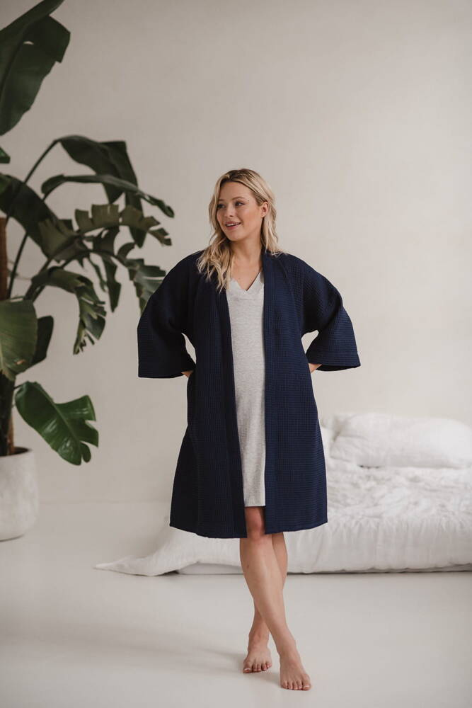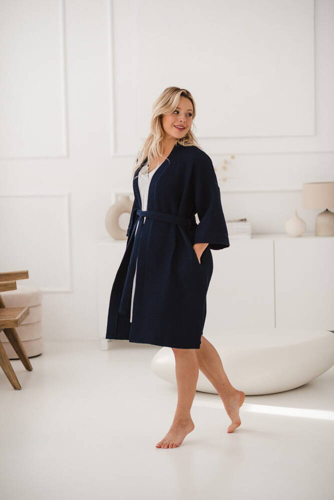 Szlafrok bawełniany wafel Milk&Love granatowy
