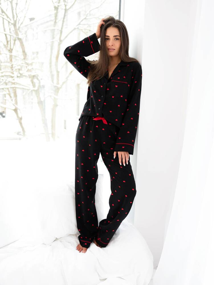 Pigiama da donna a forma di cuore in viscosa di alta qualità. Camicetta con collo aperto.