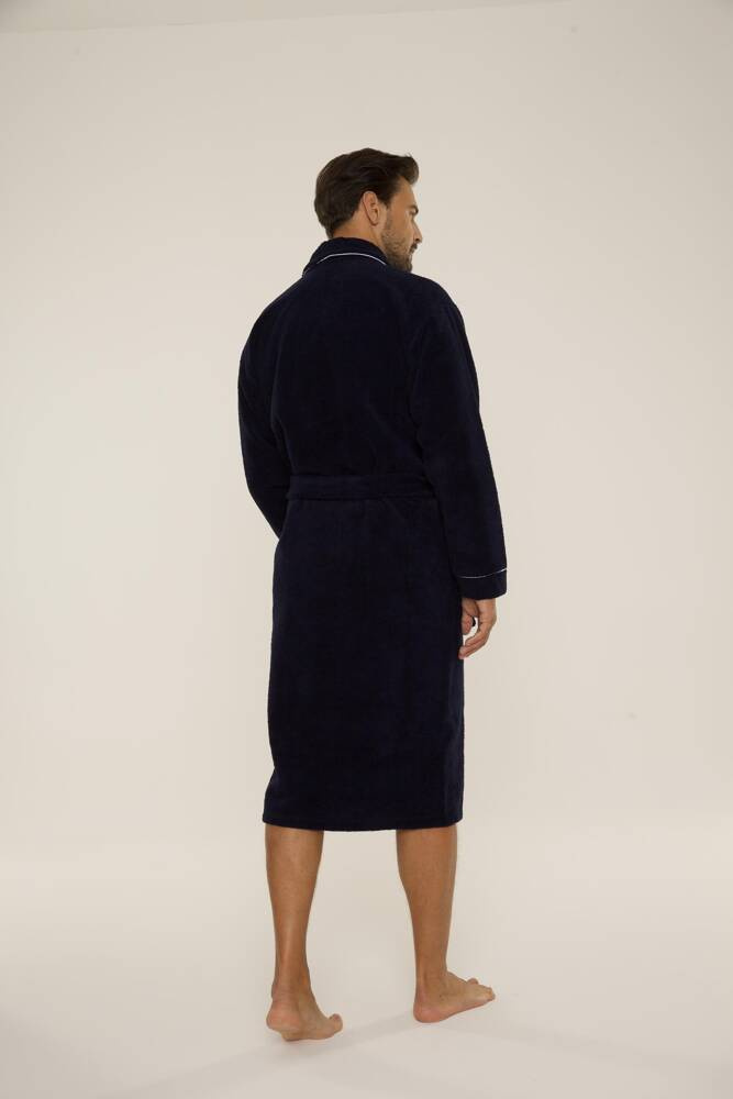 Accappatoio lungo da uomo in velluto. Modello con collo a scialle, legato in vita, con due tasche applicate sui lati e una al petto. Wrealizzato al 50% in morbida spugna di cotone. Material piacevole con una sensazione di morbidezza e un eccellente assorbimento dell'acqua.
