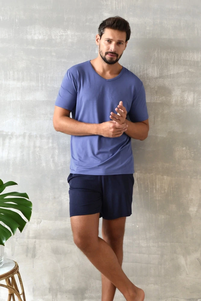 Dallas Pigiama uomo manica corta, pantaloncini Moda italiana - blu