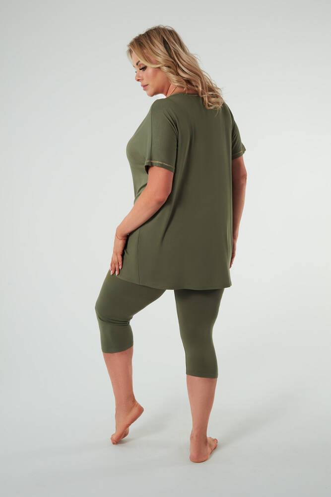 Pigiama Natura Donna manica corta, pantaloni 3/4 Moda Italiana - kaki
