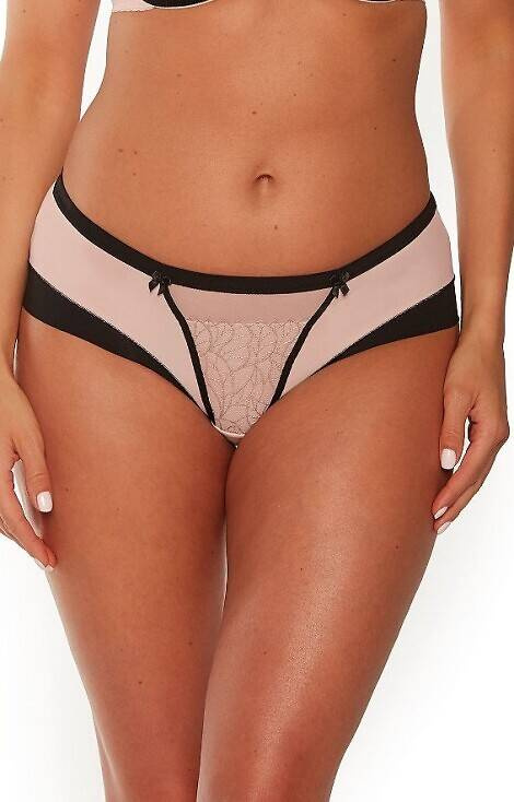 Mutandine da donna di grande effetto, dal taglio classico e completo. Ampio sui fianchi, decorato con ricami. Schiena liscia in colori combinati.