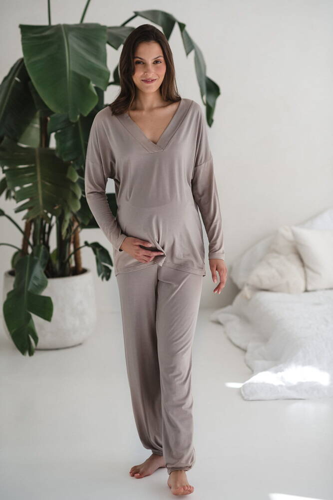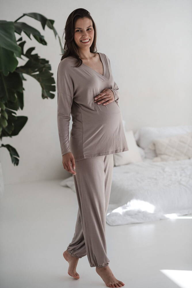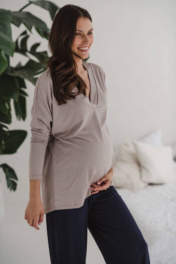 Moon bambusowa bluzka od piżamy ciążowej do karmienia długi rękaw Milk&Love beżowy
