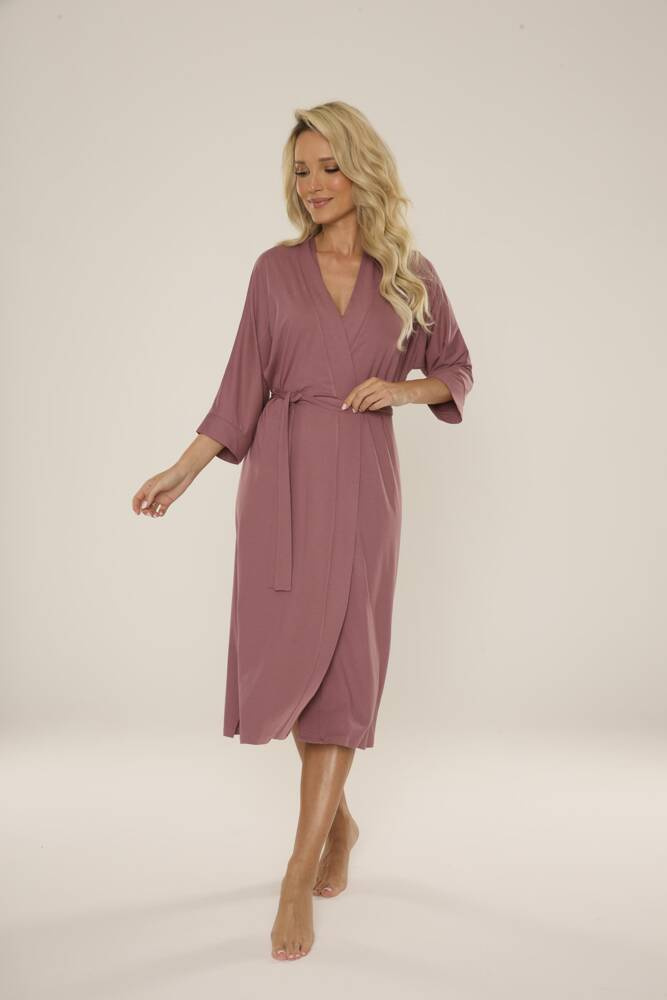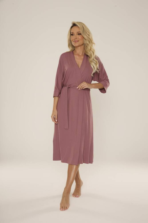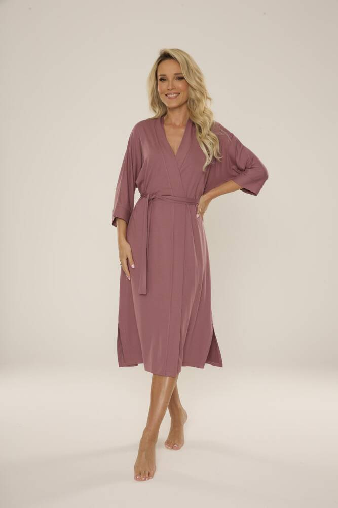 Il modello dal taglio più lungo avvolge perfettamente il corpo, mentre le maniche a 3/4 e il laccetto in vita accentuano il punto vita, aggiungendo leggerezza e femminilità al look complessivo.
