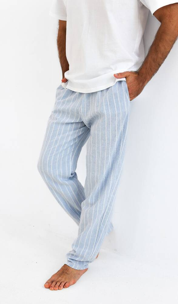 Comodo e conveniente pigiama da uomo in cotone di alta qualità. Maglietta a maniche corte. Completo di pantaloni lunghi a fantasia. Confortevole fascia elastica in vita. Modello con tasche.