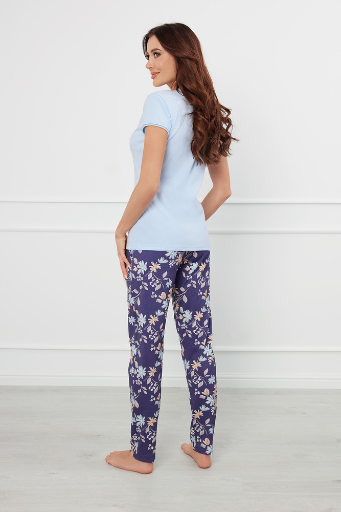Pulia Pigiama da donna a maniche corte, pantaloni lunghi Moda italiana - blu/stampa