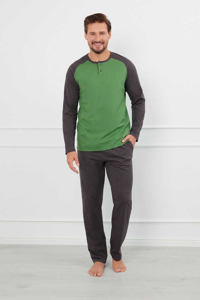 Alexander Pigiama uomo manica lunga, pantaloni lunghi Moda italiana - verde/c.melange