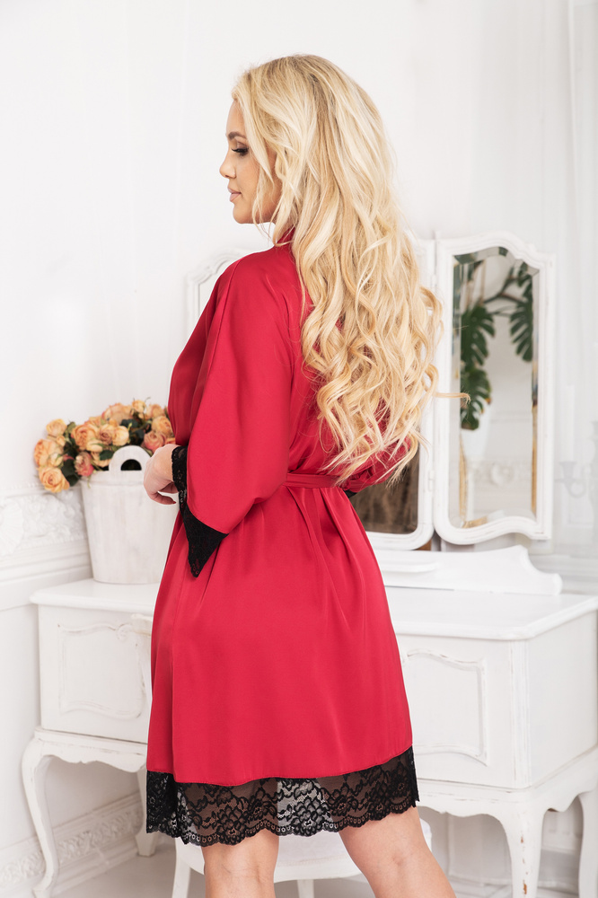 • Elegante vestaglia Sumi Kalimo in morbido raso lucido. Rifinito con un elegante pizzo sulle maniche e sul fondo, con una cravatta in vita: perfetto per ogni momento della giornata.