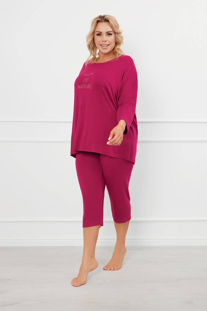 I pigiami da donna in viscosa sono la scelta perfetta per le donne che apprezzano un'eleganza discreta. Questo pigiama è composto da una camicetta oversize con maniche a 3/4 e da pantaloni a 3/4 abbinati. Il top del pigiama presenta uno scollo rotondo e la scritta decorativa "Part of Nature". Realizzato in morbida e delicata viscosa, questo pigiama assicura una vestibilità confortevole. L'insieme è mantenuto in uno schema di colori tenui e uniformi, che ne sottolineano il carattere elegante.