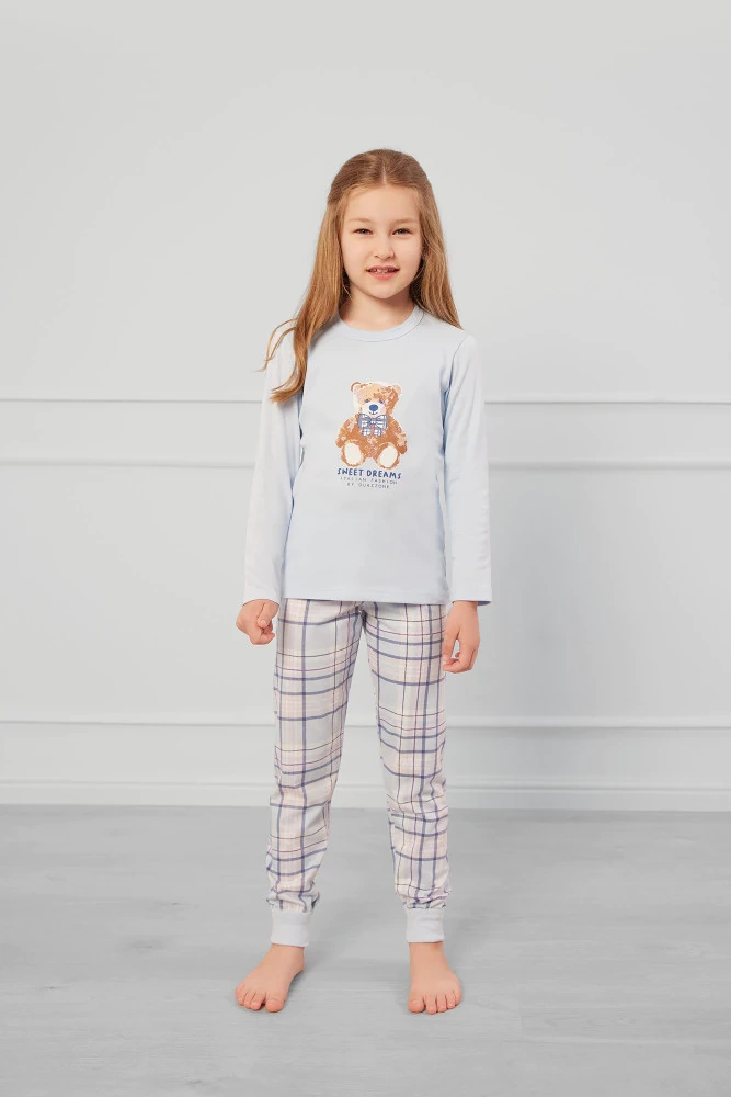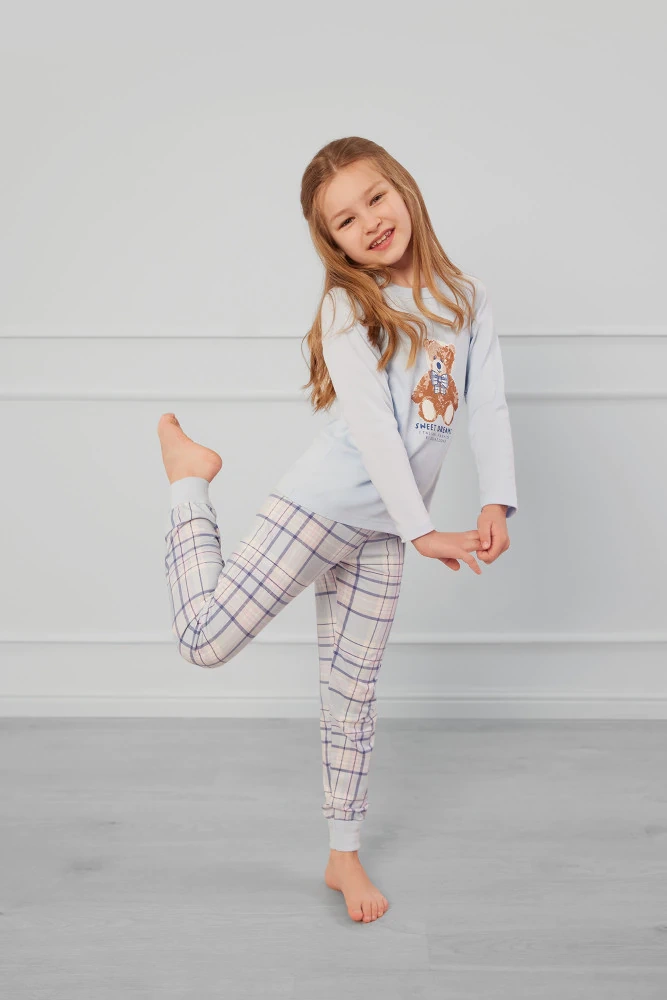 Questo adorabile pigiama da bambina si distingue per il taglio morbido e aderente che garantisce comfort e libertà di movimento. Il pigiama ha maniche lunghe e scollo rotondo ed è decorato da una stampa con un adorabile orsetto e la scritta "Sweet Dreams" Italian Fashion by Guazzone. I pantaloni hanno un taglio classico e una fantasia a quadri alla moda e sono dotati di pratiche coulisse in fondo alle gambe per evitare che scivolino durante il sonno.