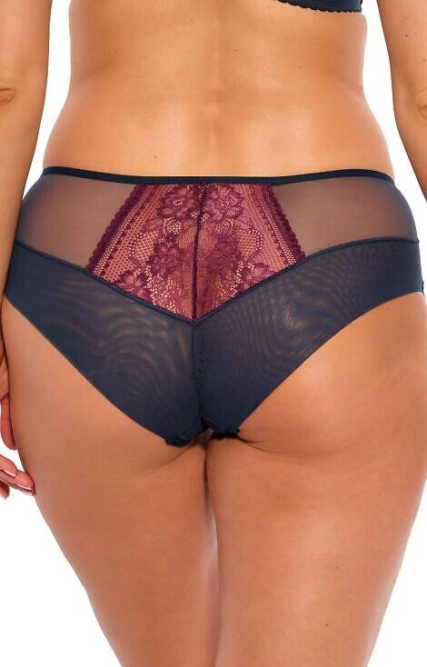 Mutandine da donna con taglio completo e incorporato. Realizzato in rete trasparente e pizzo traforato. Vita elastica piatta.
