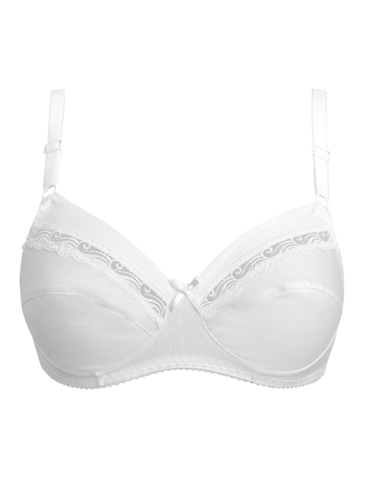 - Reggiseno morbido senza ferretto in cotone. Coppe lisce con dettaglio in pizzo e fiocco. Spallacci regolabili, chiusura classica.