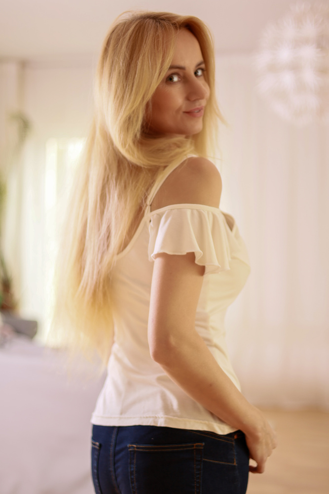 - Camicetta femminile con spalle scoperte e dettagli a balze. Maglia elastica in viscosa. Disponibile in: nero, ecru, blu navy, rosso. Prodotto in Polonia.