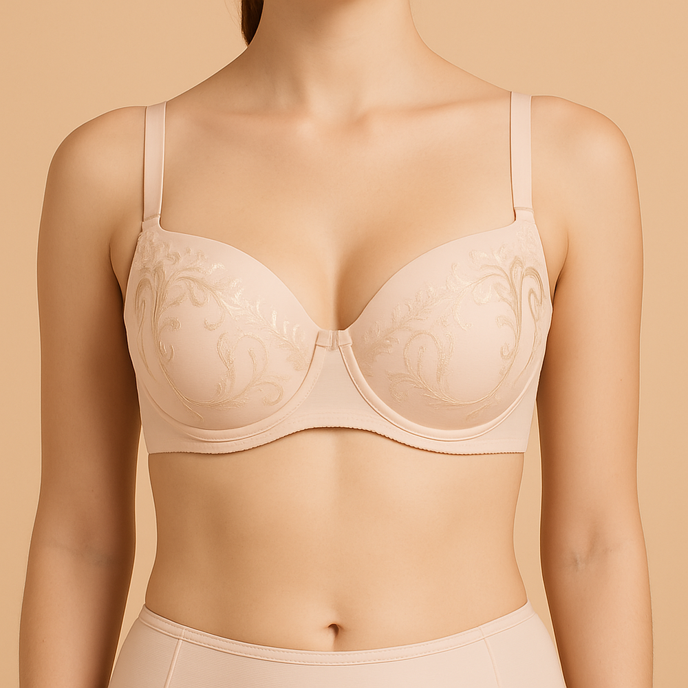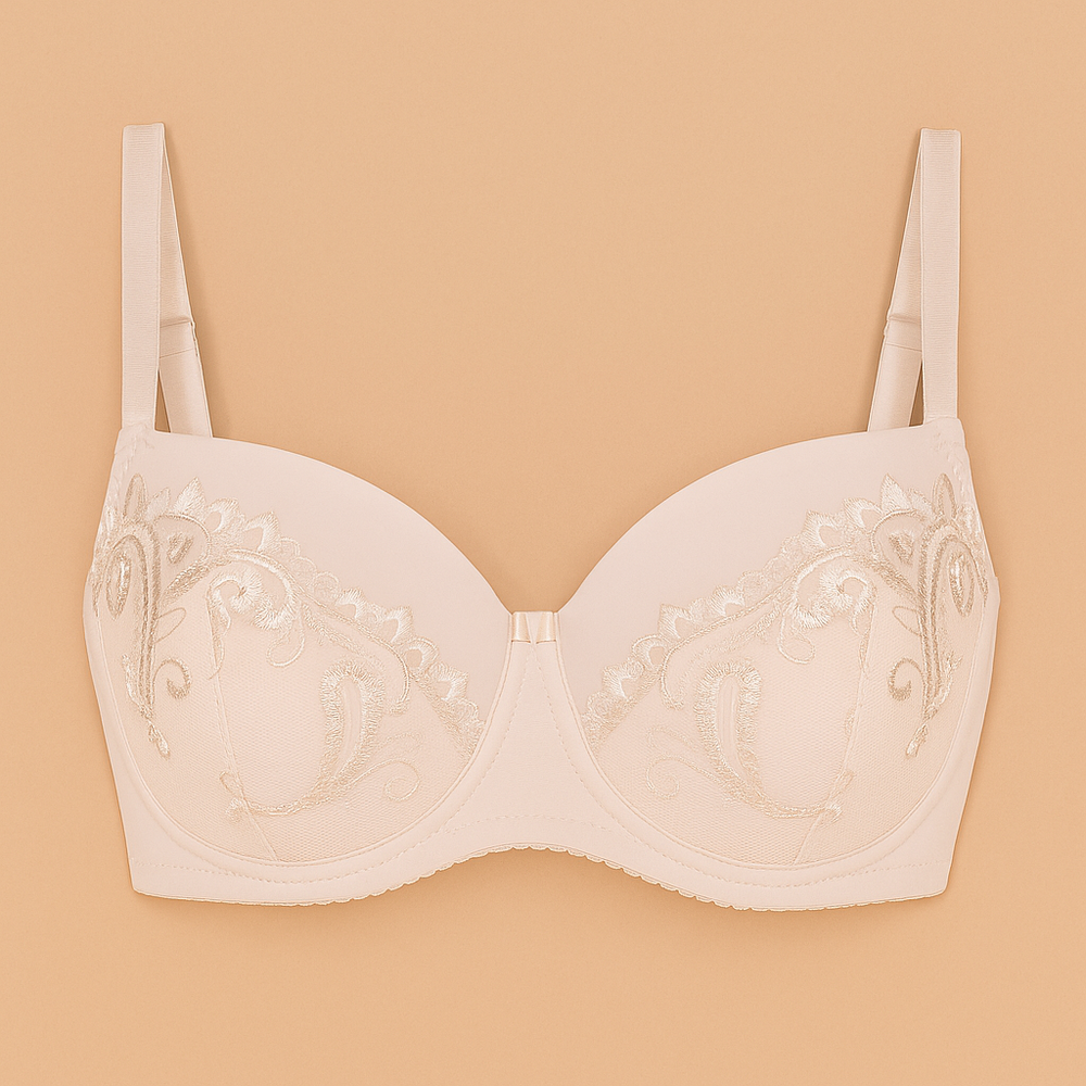 - Reggiseno a coppa intera in carne con pizzo e coppe piene. Eccellente sostegno e comfort per tutto il giorno.