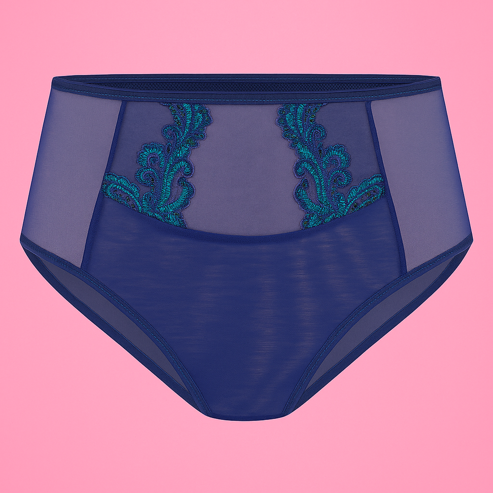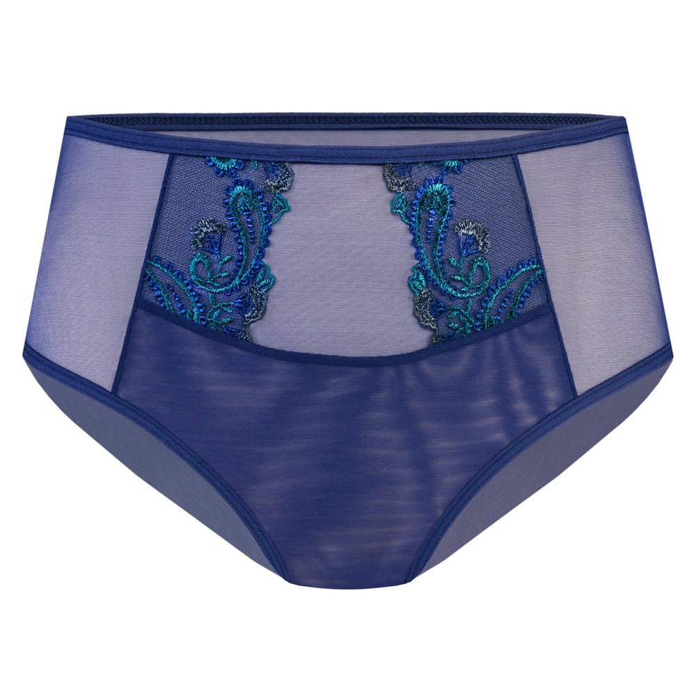 Mutandine da donna VF-474 - a vita alta, in pizzo, comfort Vena blu navy-verde