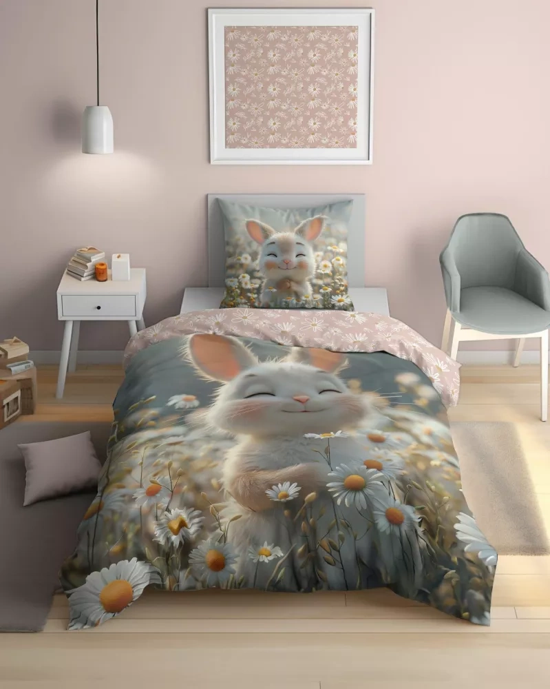 5548 A Fluo 95 Biancheria da letto coniglietto fosforescente a fiori 100% cotone | Per bambini Detexpol