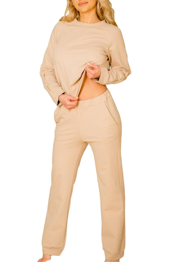 Maio tuta donna Mirale cotone 95% cotone 5% elastan, produzione polacca - set sportivo elegante - beige