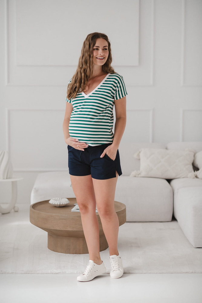 Camicetta da gravidanza e allattamento Two Ways | Manica corta, confortevole Milk&Love a righe verdi e bianche