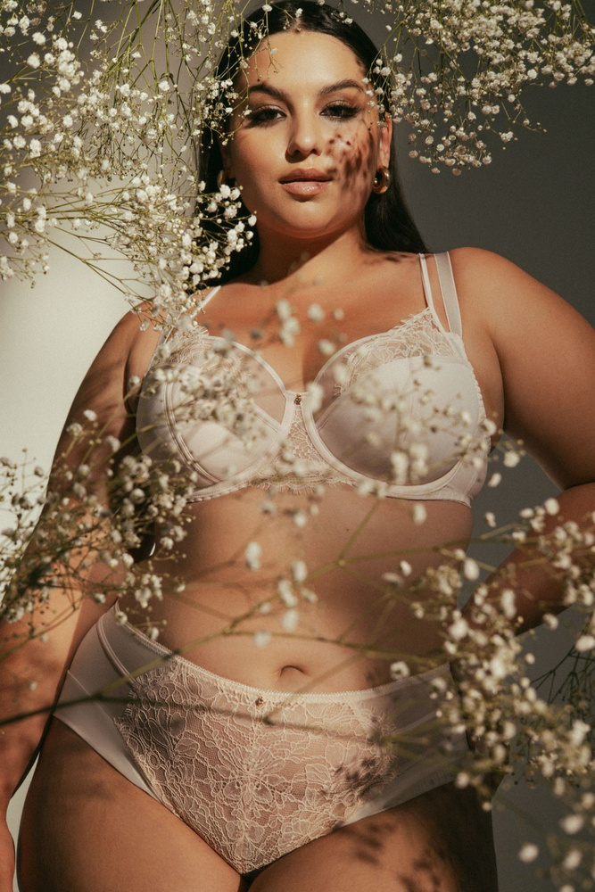 Tazze del tipo semi-morbido (semi-imbottiti) modellano perfettamente il seno, offrendo una forma naturale e un sostegno ottimale. La parte inferiore della coppa è delicatamente imbottita, mentre la parte superiore è realizzata in un bellissimo pizzo leggermente trasparente, che aggiunge un tocco romantico all'insieme.