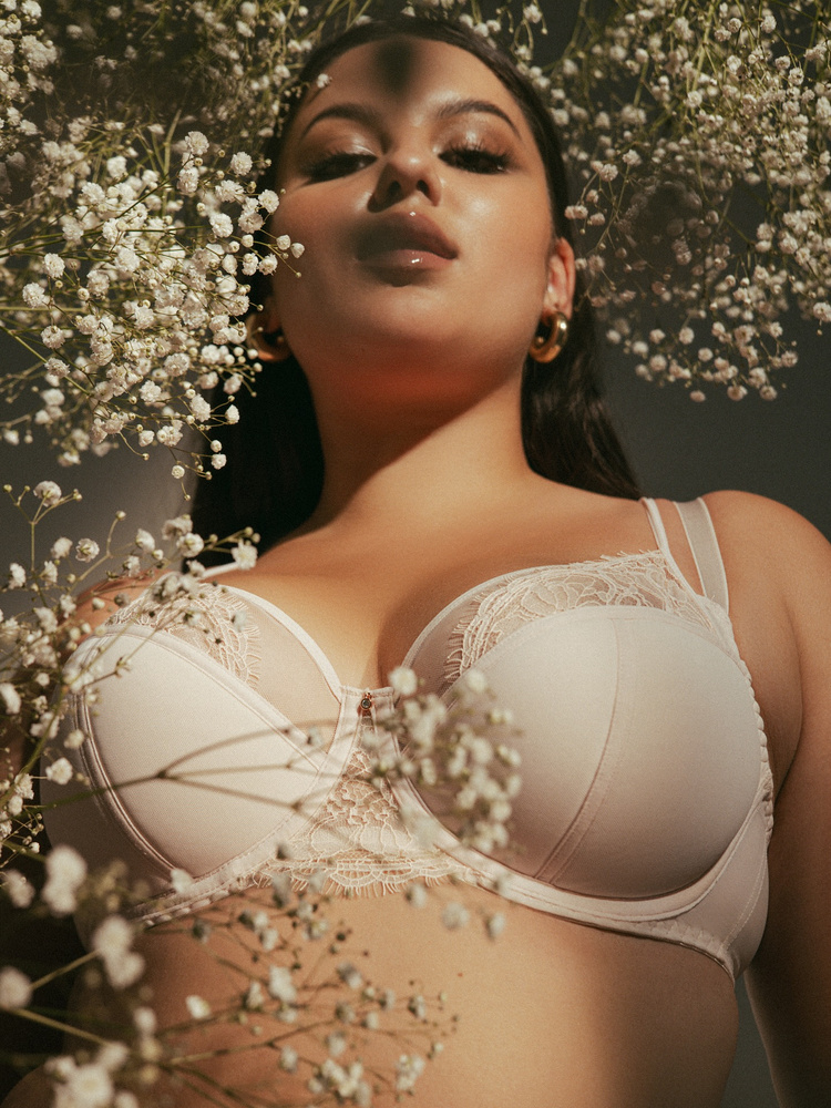 2163 Maxi reggiseno semi-morbido Ava Powder Pink - Reggiseno semi-imbottito per seni grandi con pizzo