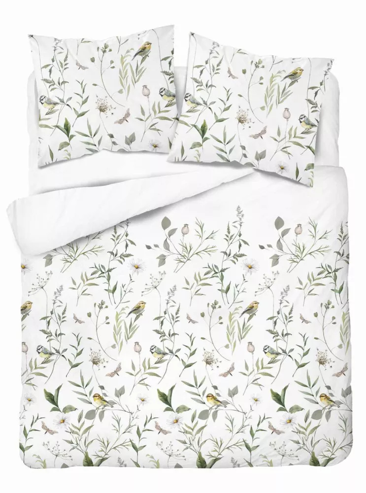 5500 A Biancheria da letto in cotone bianco con rami verdi e uccello Naturalis- Detexpol